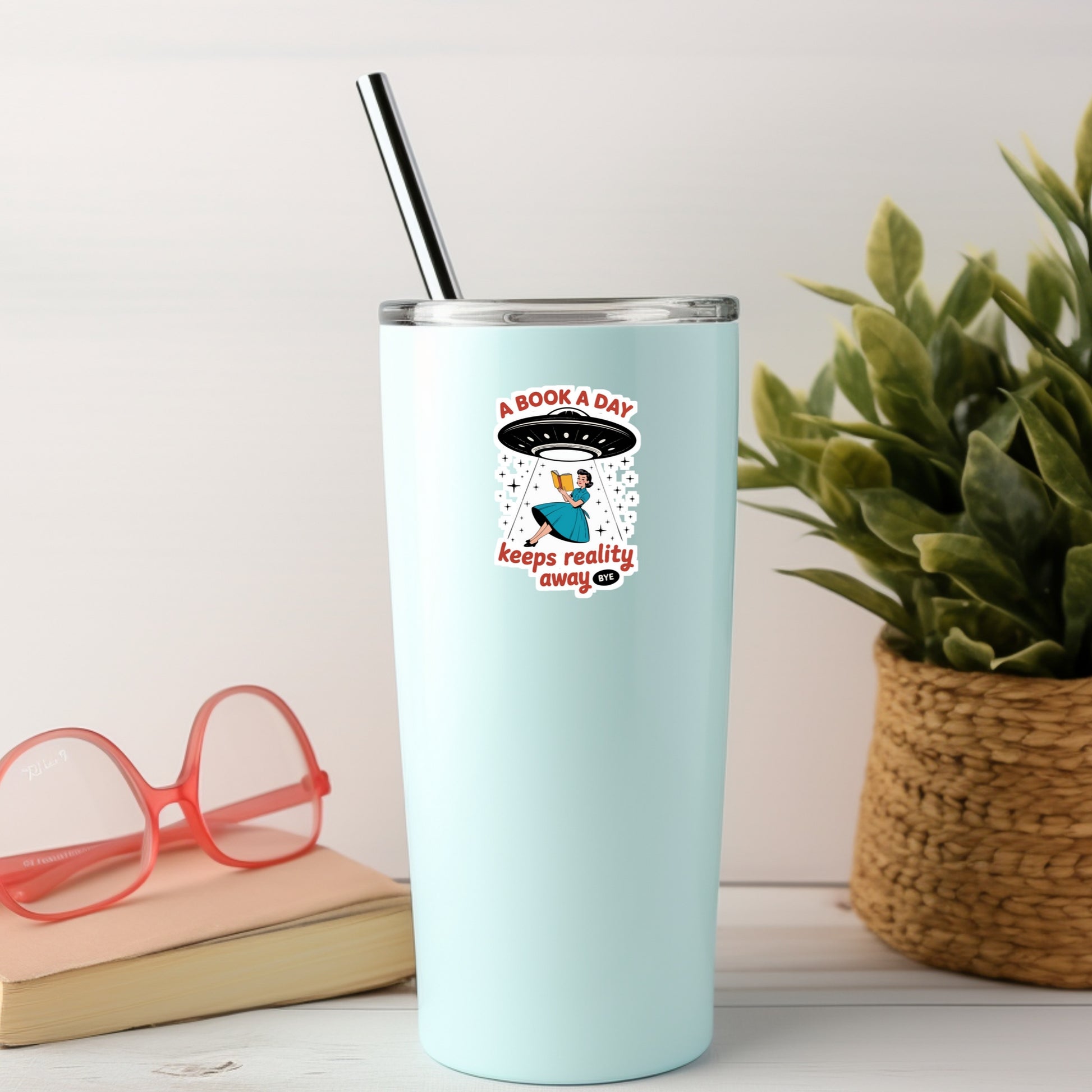 A Book a Day Keeps Reality Away โ 3" Waterproof Bookish Sticker with Holo Overlay โ Reading, Books, Reader Gift, Book Lover