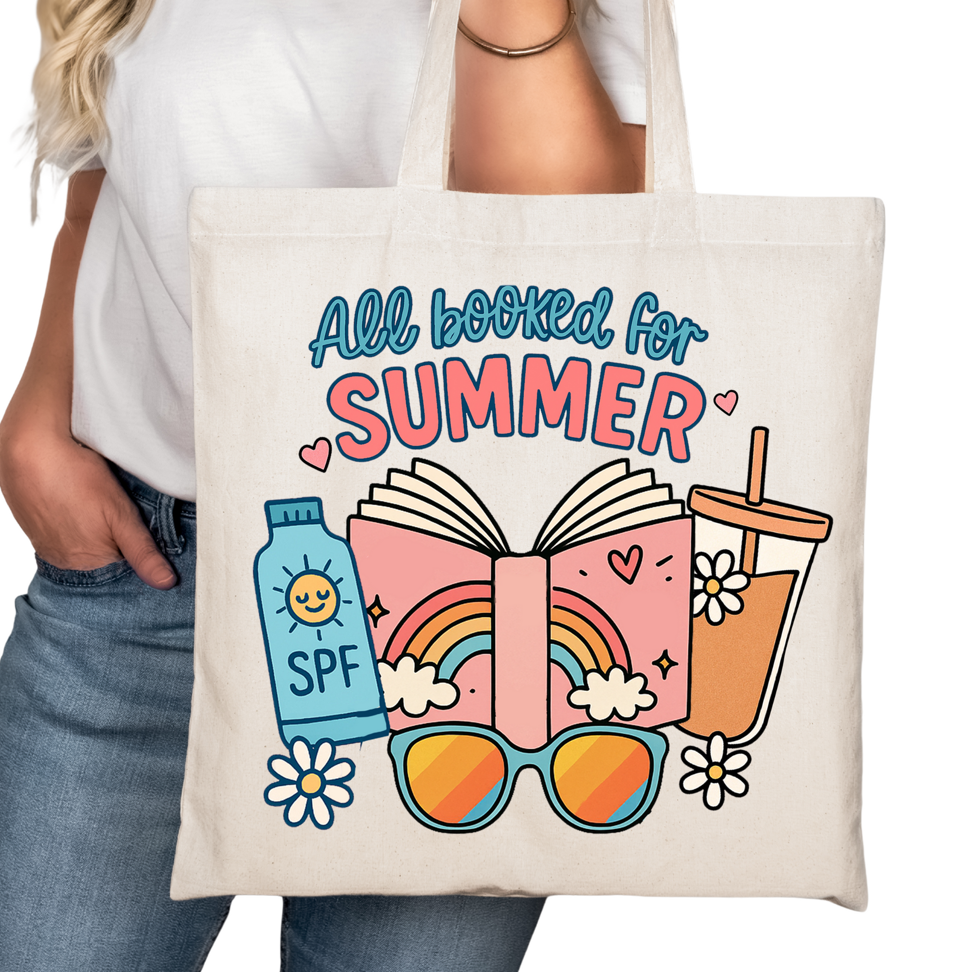 All Booked For Summer Bookish Tote Bag – Funny Reading Tote for Book Lovers – Introvert Gift – Romance Reader Bag – Book Club Gift