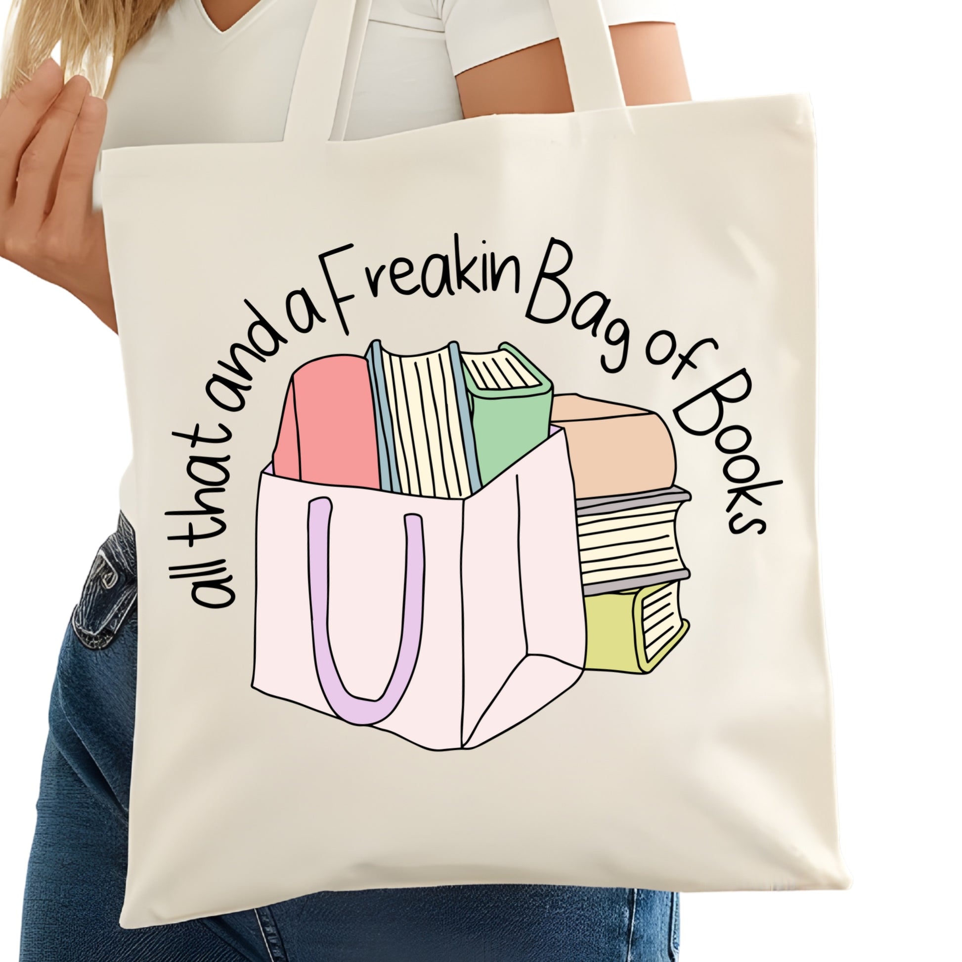 All That and a Freakin Bag of Books Bookish Tote Bag – Reading Tote for Book Lovers – Book Reader Bag - Romance Reader Tote - Book Store