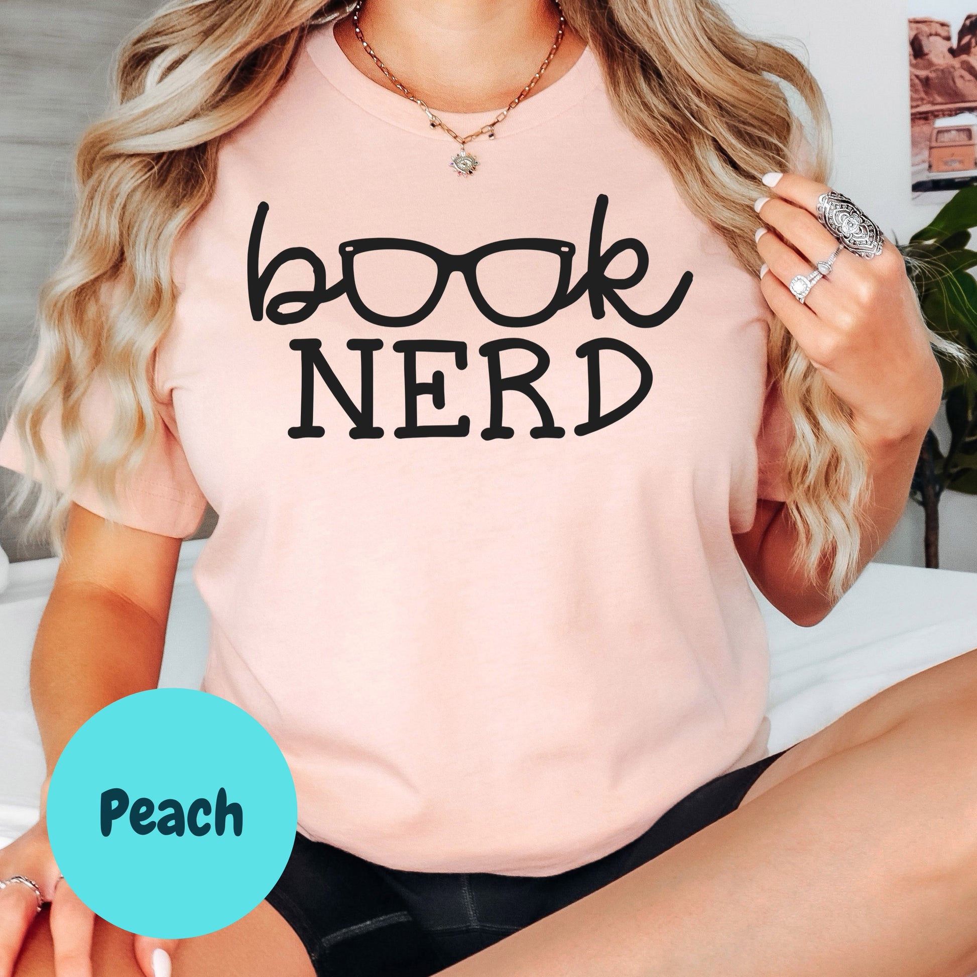🤓 For loud & proud readers – Features the phrase “book nerd” with playful lettering and glasses worked into the design