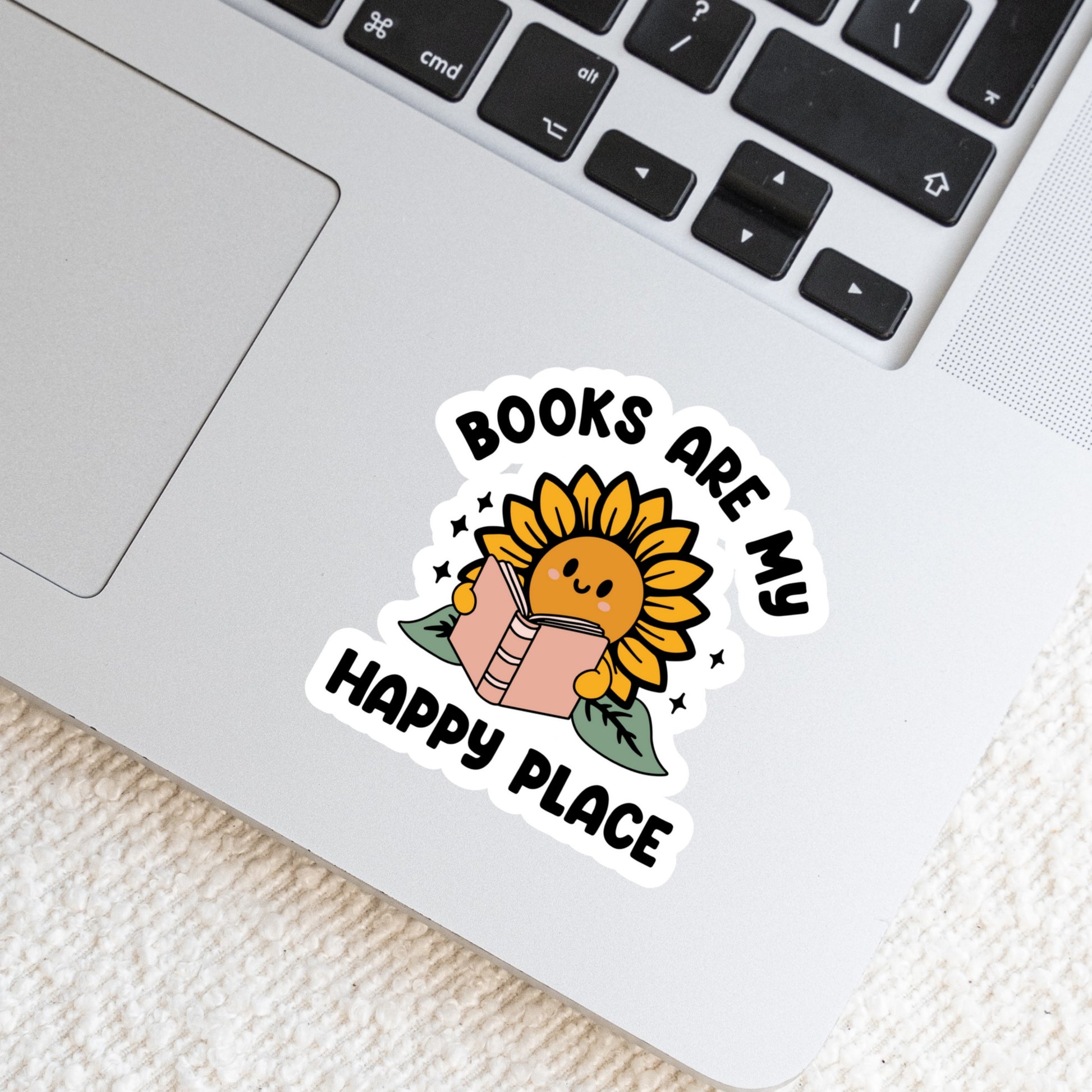 Books are My Happy Place โ 3" Waterproof Bookish Sticker with Holo Overlay โ Reading, Books, Reader Gift, Book Lover