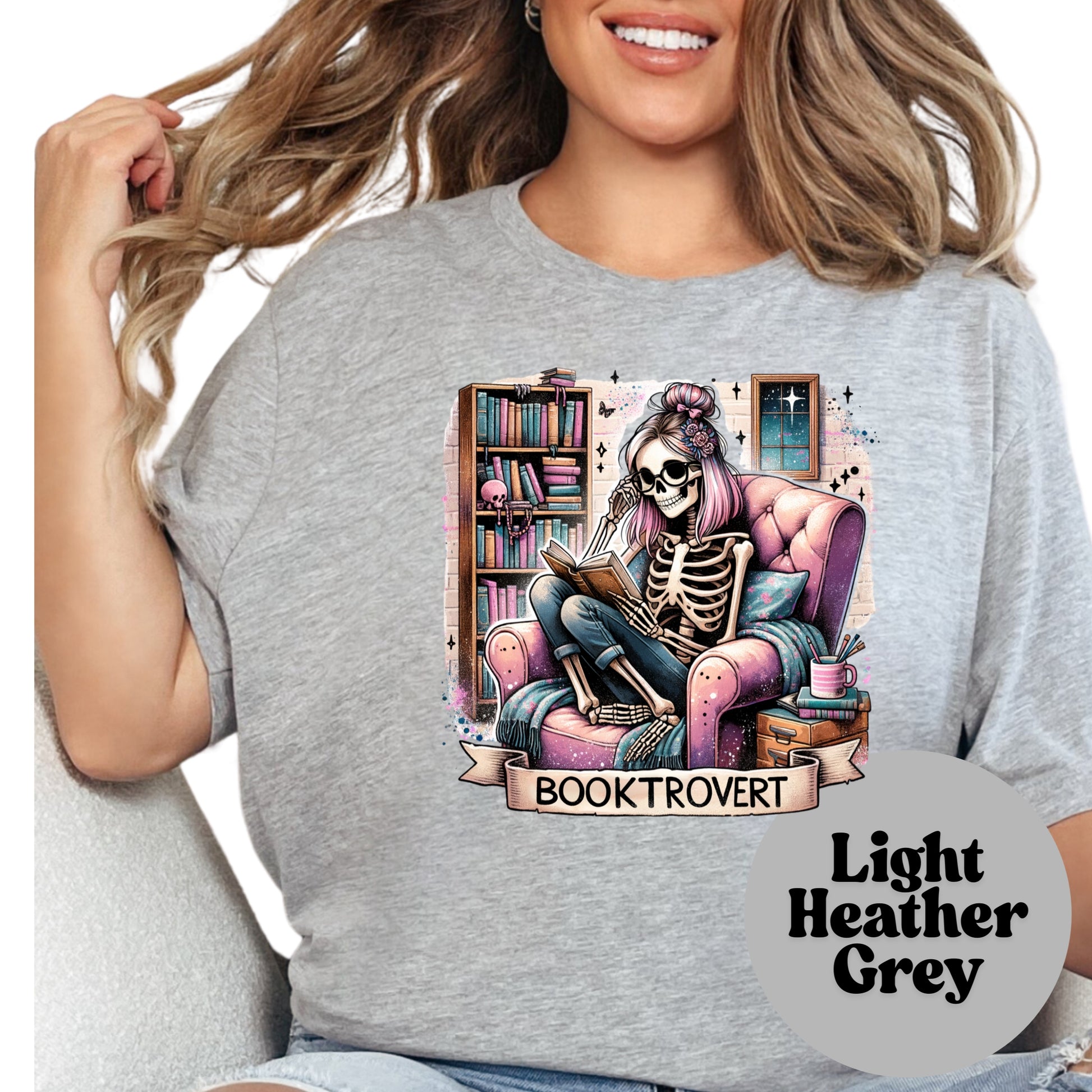 booktrovert shirt, introvert reader tee, skeleton book lover shirt, spooky book shirt, cozy reader merch, bookish graphic tee, bookworm gift, booktok shirt, dark romance reader, goth reader shirt, comfy book tee, aesthetic reader shirt, cozy fall book shirt