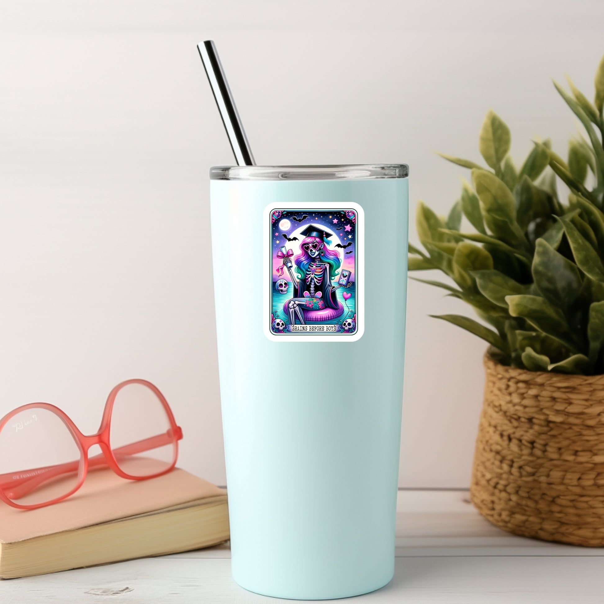 Brains Before Books Tarot Card Sticker โ 3" Waterproof Bookish Sticker with Holo Overlay โ Reading, Books, Reader Gift, Book Lover
