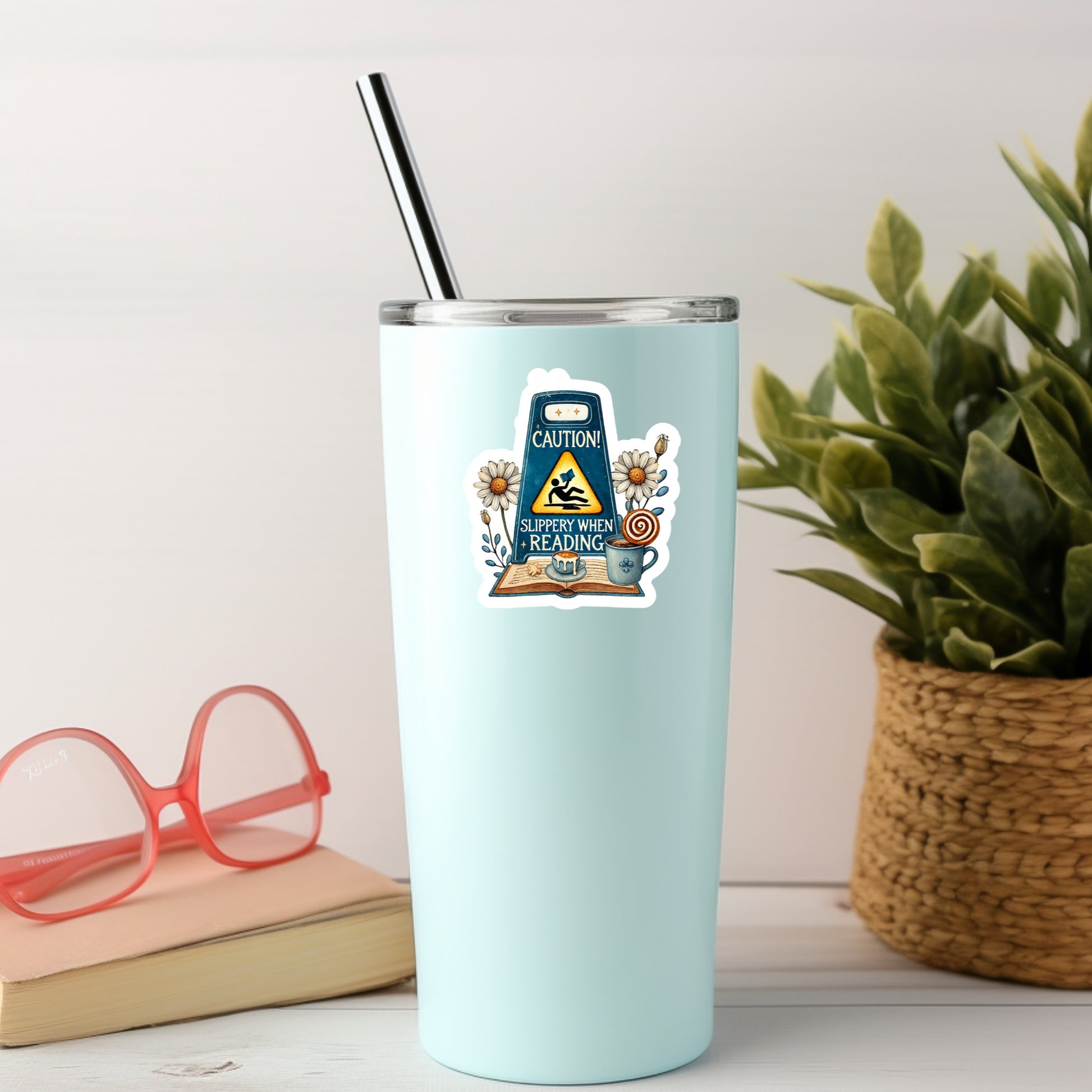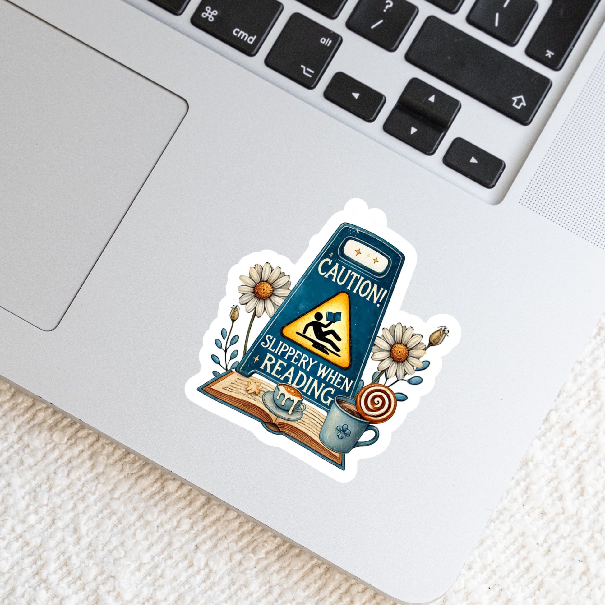 Caution Slippery When Wet Smut Reader โ 3" Waterproof Bookish Sticker with Holo Overlay โ Reading, Books, Reader Gift, Book Lover
