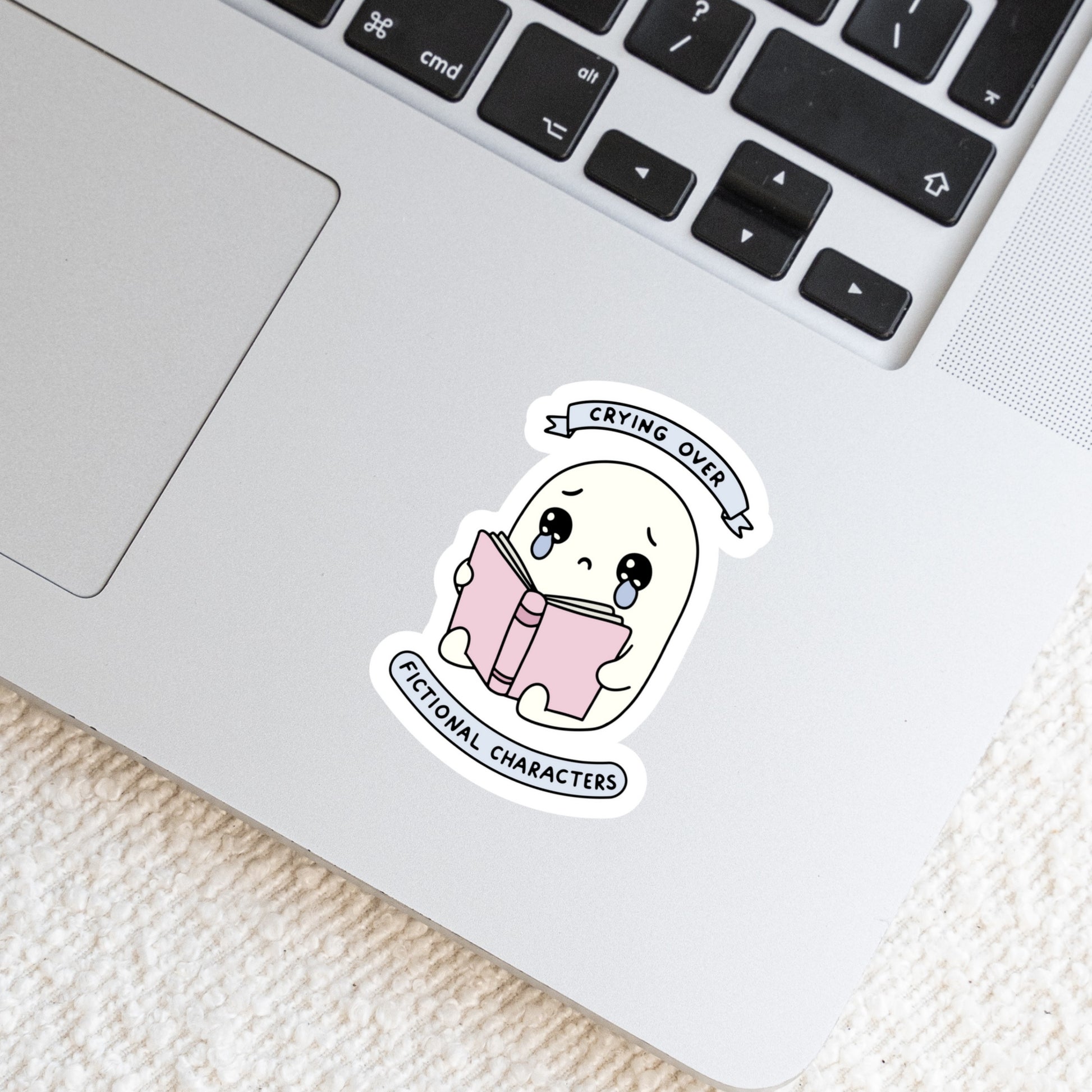 Crying Over Fictional Characters Ghost โ 3" Waterproof Bookish Sticker with Holo Overlay โ Reading, Books, Reader Gift, Book Lover