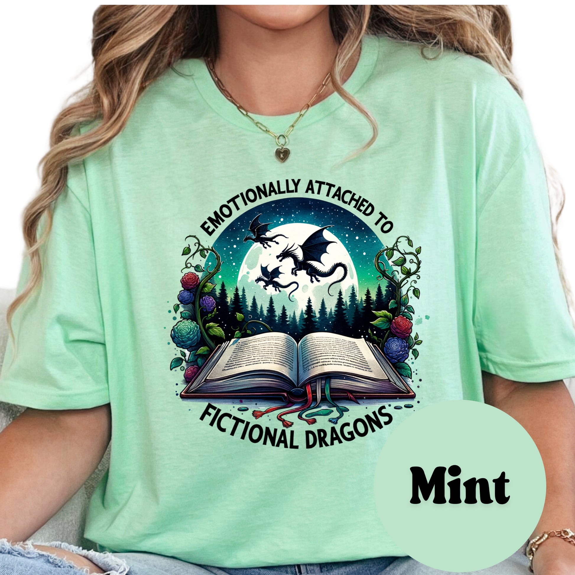 dragon book shirt, romantasy shirt, fantasy book lover tee, emotionally attached shirt, fictional dragon shirt, booktok reader shirt, enchanted forest tee, fantasy reader merch, book lover gift, cozy fantasy shirt, colorful book tee, reader lifestyle shirt, dragon lover tee