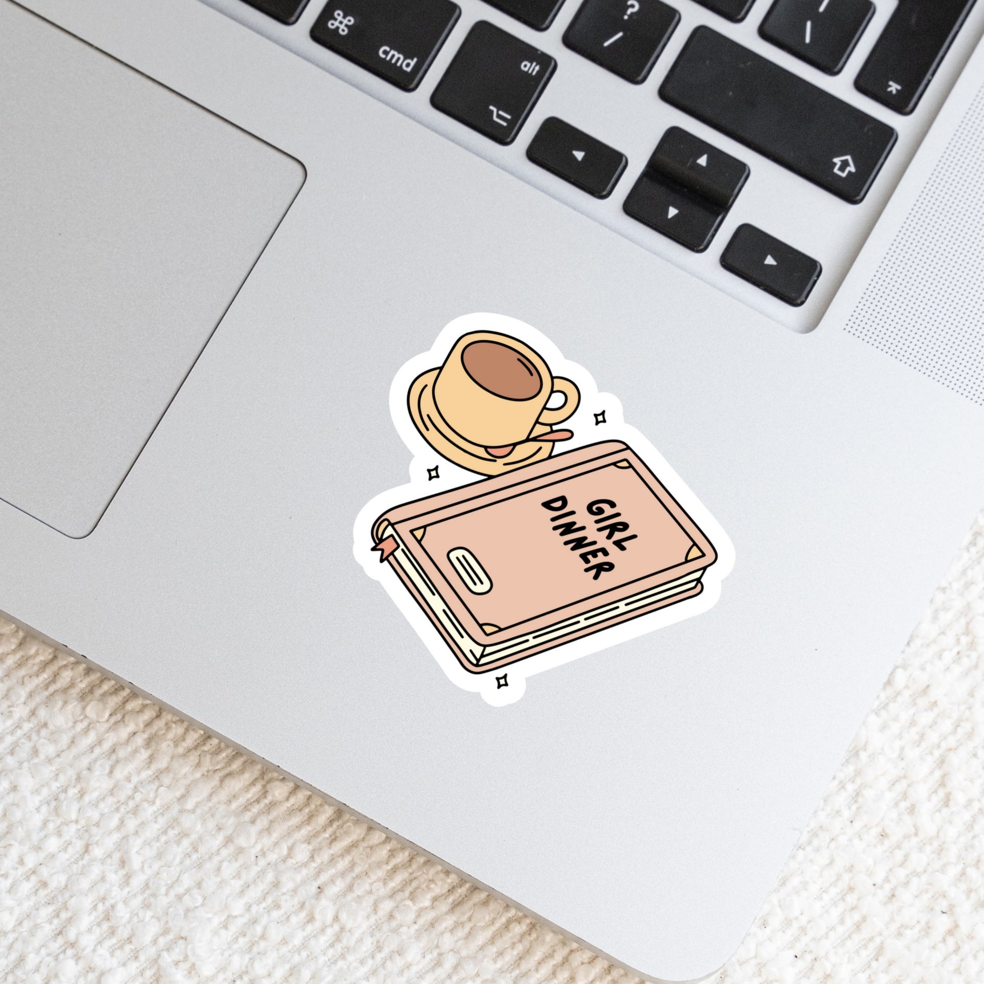 Girl Dinner Books with Coffee โ 3" Waterproof Bookish Sticker with Holo Overlay โ Reading, Books, Reader Gift, Book Lover
