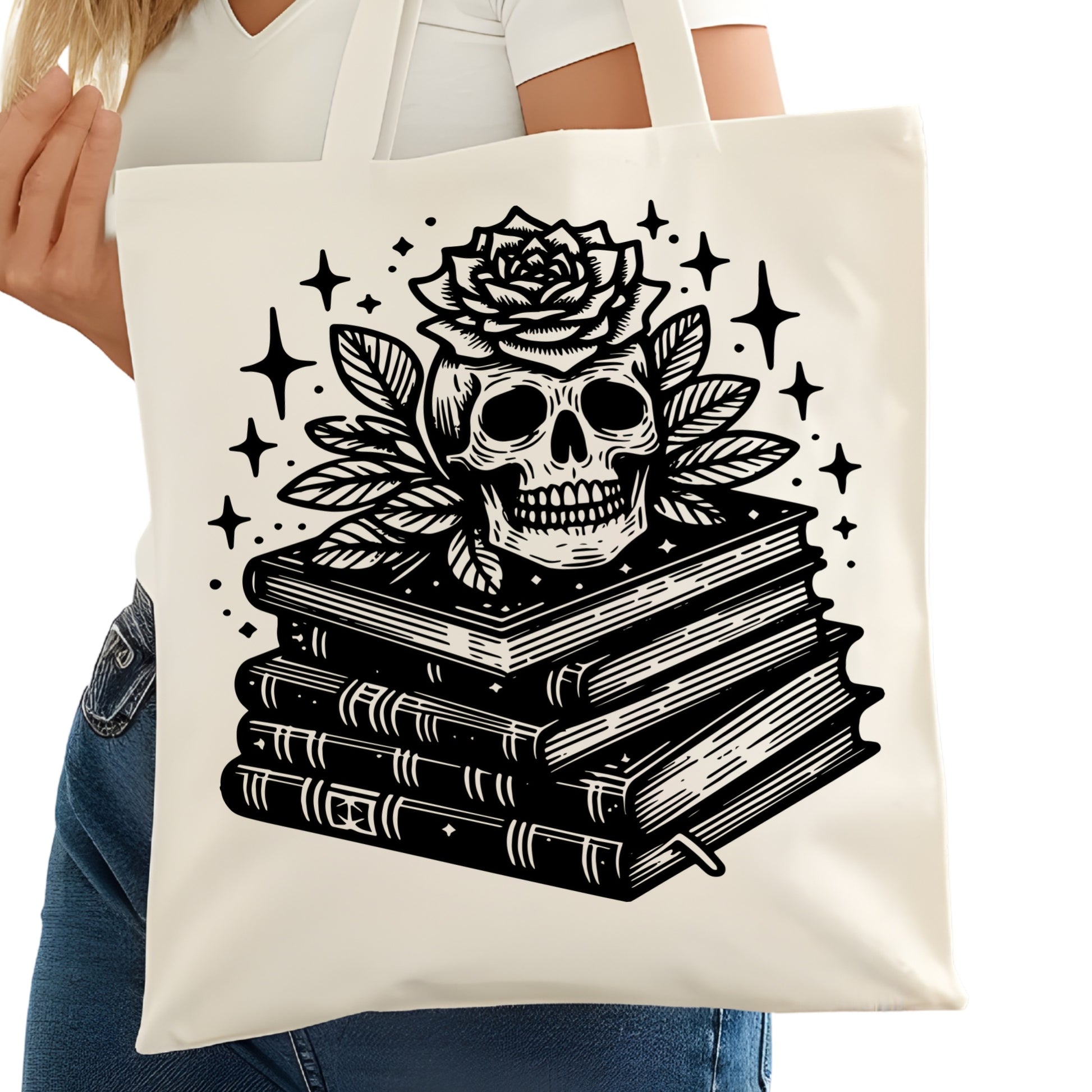 Gothic Books and Skull Bookish Tote Bag – Reading Tote for Book Lovers – Book Reader Bag - Romance Reader Tote - Book Store