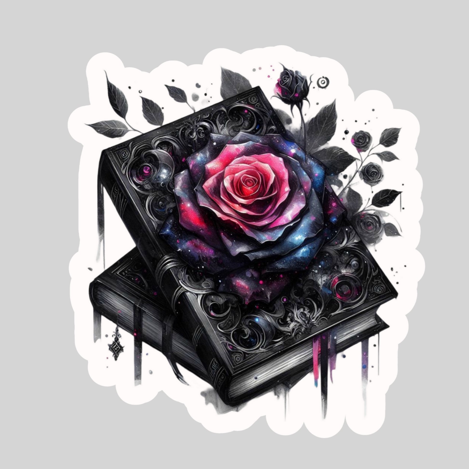 Gothic Dark Romance Rose Books โ 3" Waterproof Bookish Sticker with Holo Overlay โ Reading, Books, Reader Gift, Book Lover
