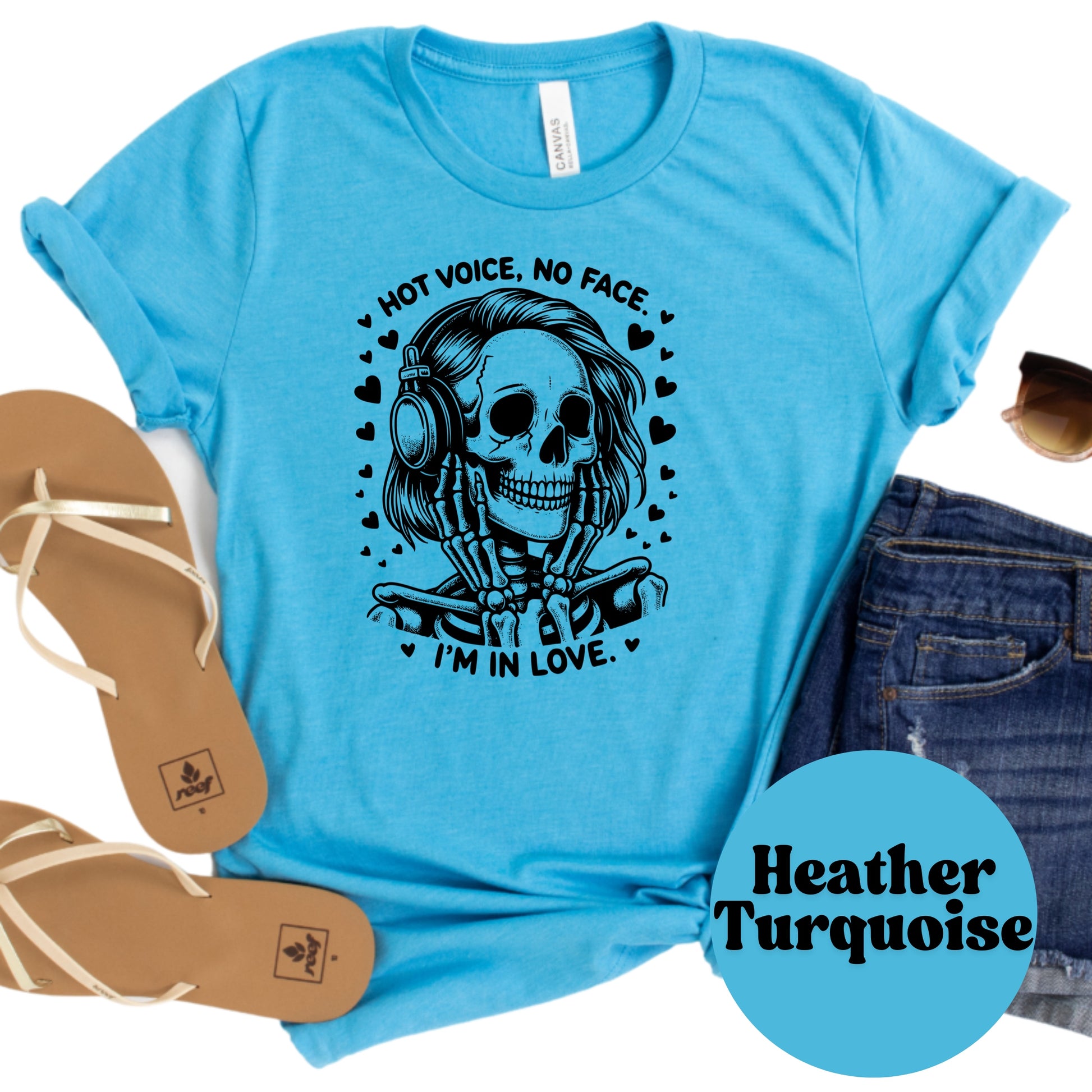 Hot Voice No Face Shirt, Smutty romance Narrator Tee – Skeleton Headphones Top – Booktok Shirt – Audio Lover Gift – Romance Tropes Shirt
