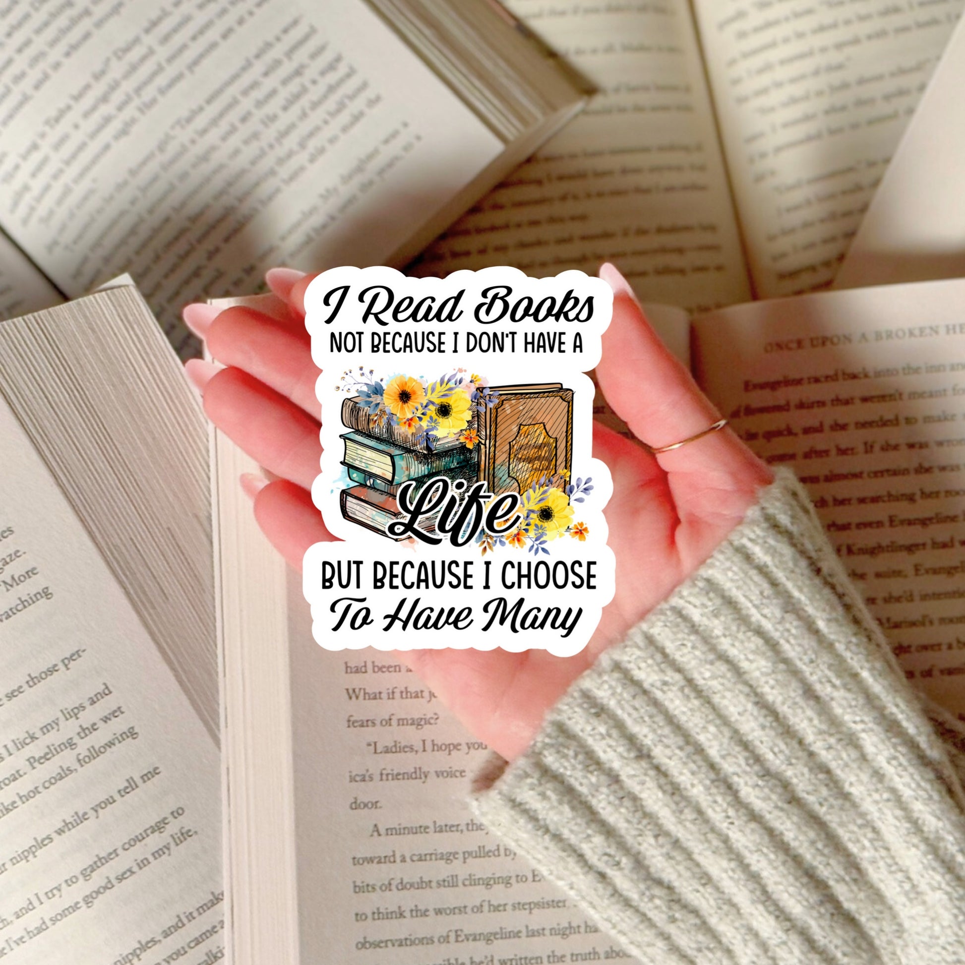 I Read Books so I can Have Many Lives Book Reader โ 3" Waterproof Bookish Sticker with Holo Overlay โ Reading, Books, Reader Gift, Book Lover, Bookstore Merch