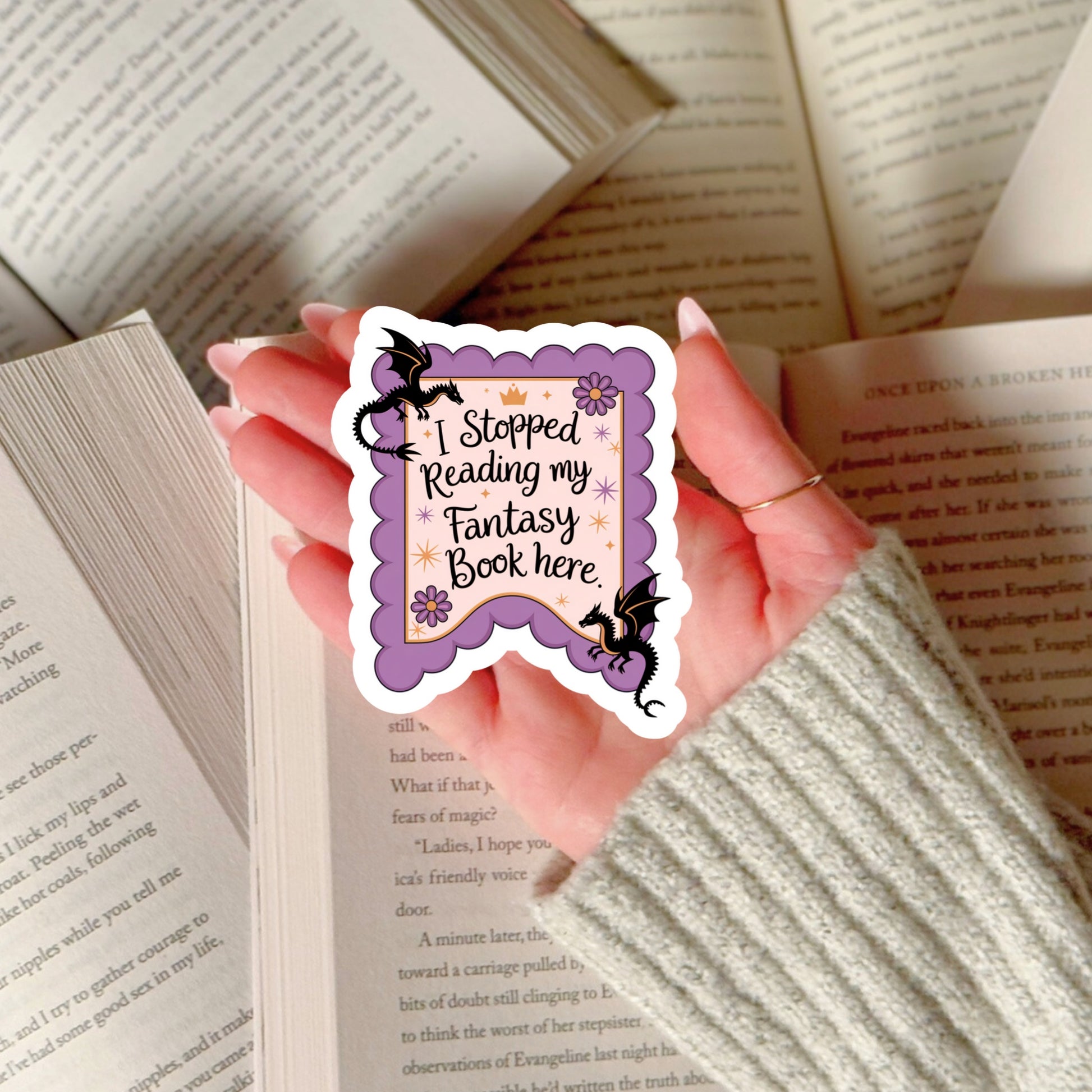 I Stopped Reading My Fantasy Book Here Book Reader Sticker โ 3" Waterproof Bookish Sticker with Holo Overlay โ Reading, Books, Reader Gift, Book Lover, Bookstore Merch