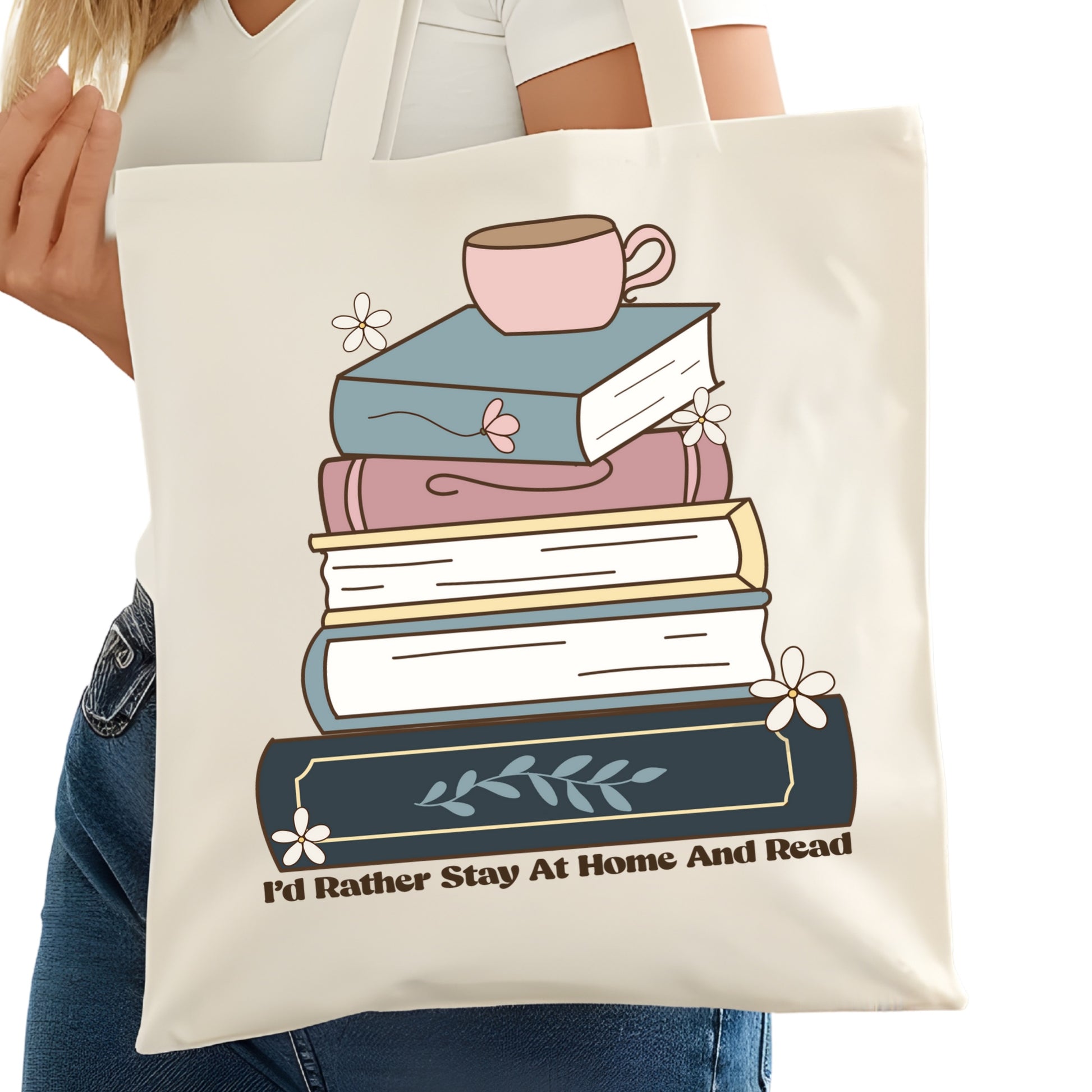 Id Rather Stay at Home Bookish Tote Bag – Reading Tote for Book Lovers – Book Reader Bag - Romance Reader Tote - Book Store