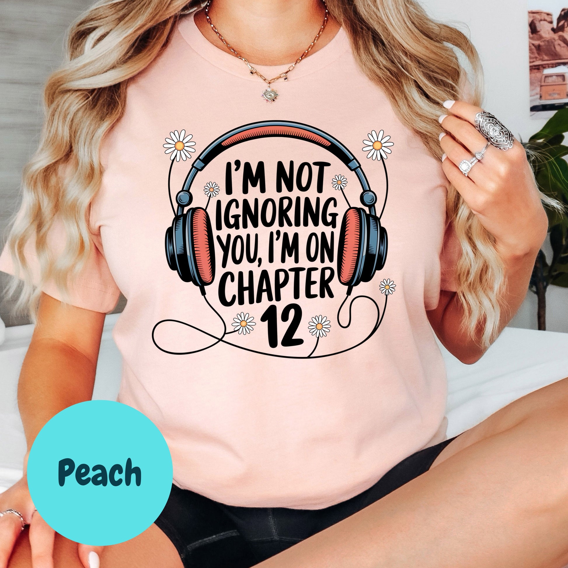 audiobook shirt, chapter 12 tee, daisy book shirt, funny book shirt, reader gift, introvert book tee, bookish peach shirt, headphones book tee, audible shirt, bookworm shirt, podcast lover tee, book girl aesthetic, peach reading shirt