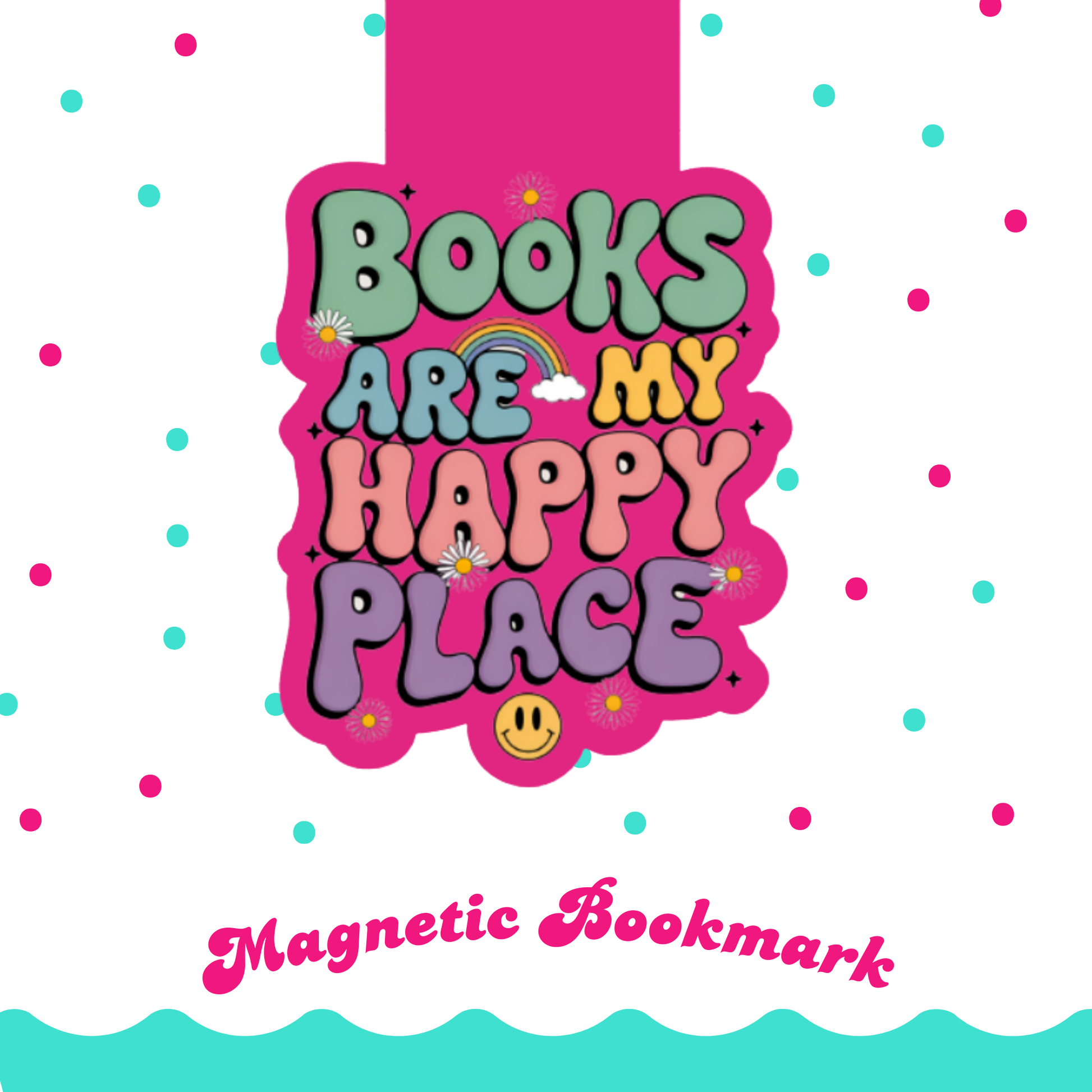 Magnetic Bookmark - Books are My Happy Place Laminated with Holographic Overlay, Waterproof, Bookstore Merch, Book Reader