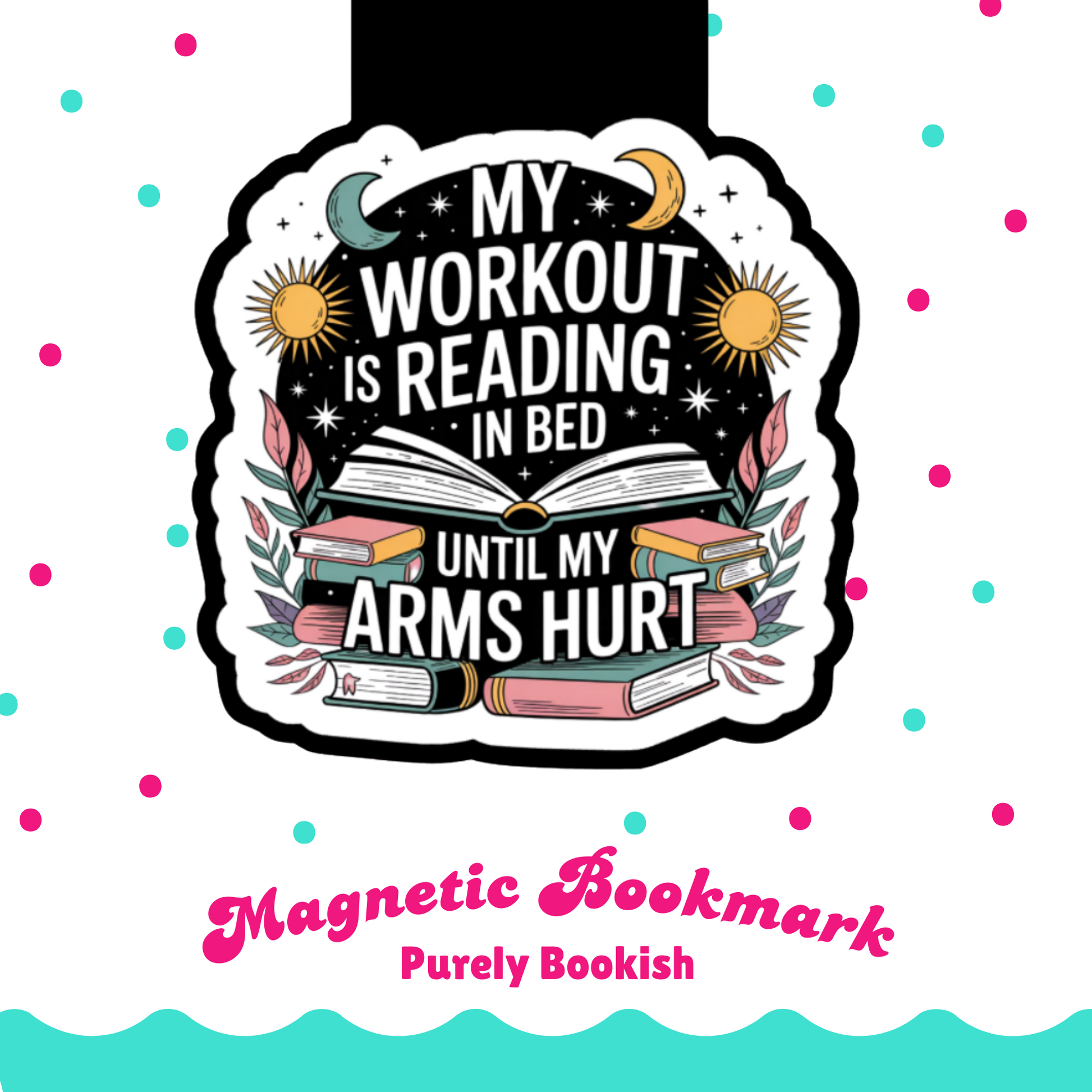 Magnetic Bookmark, My Workout is Reading in Bed Until My Arms Hurt Laminated Holographic Overlay, Waterproof, Bookstore Merch, Book Reader