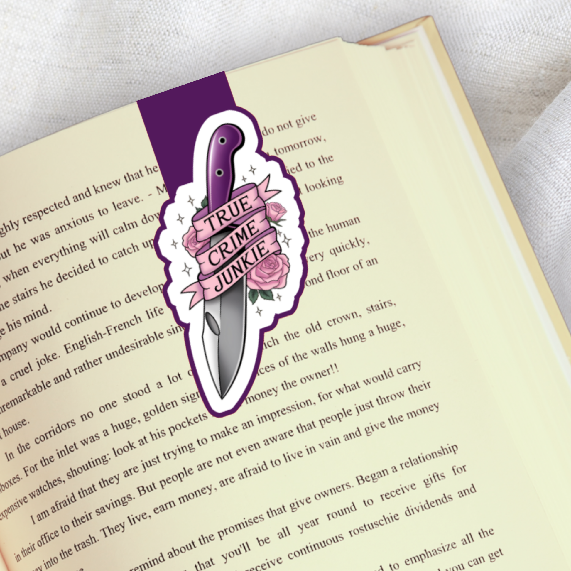 Magnetic Bookmark, True Crime Junkie Laminated with Holographic Overlay, Waterproof, Bookstore Merch, Book Reader