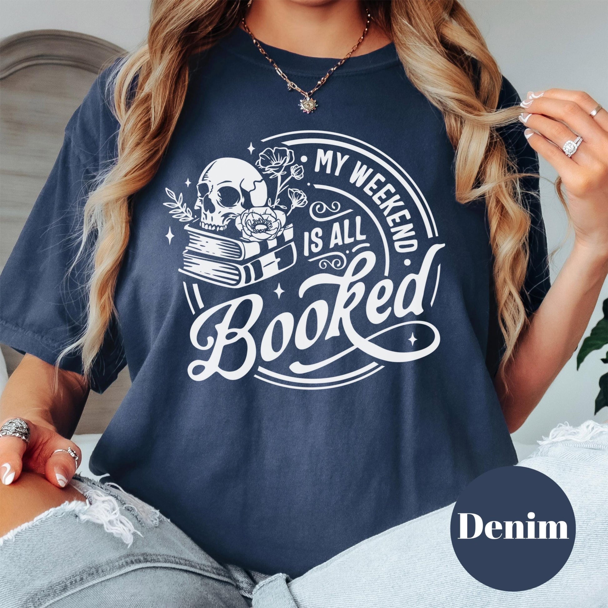My Weekend Is All Booked Shirt, Gothic Book Comfort Colors® Shirt, Dark Academia Reading Tee, Skull Book Lover Gift, Spooky Bookish Shirt