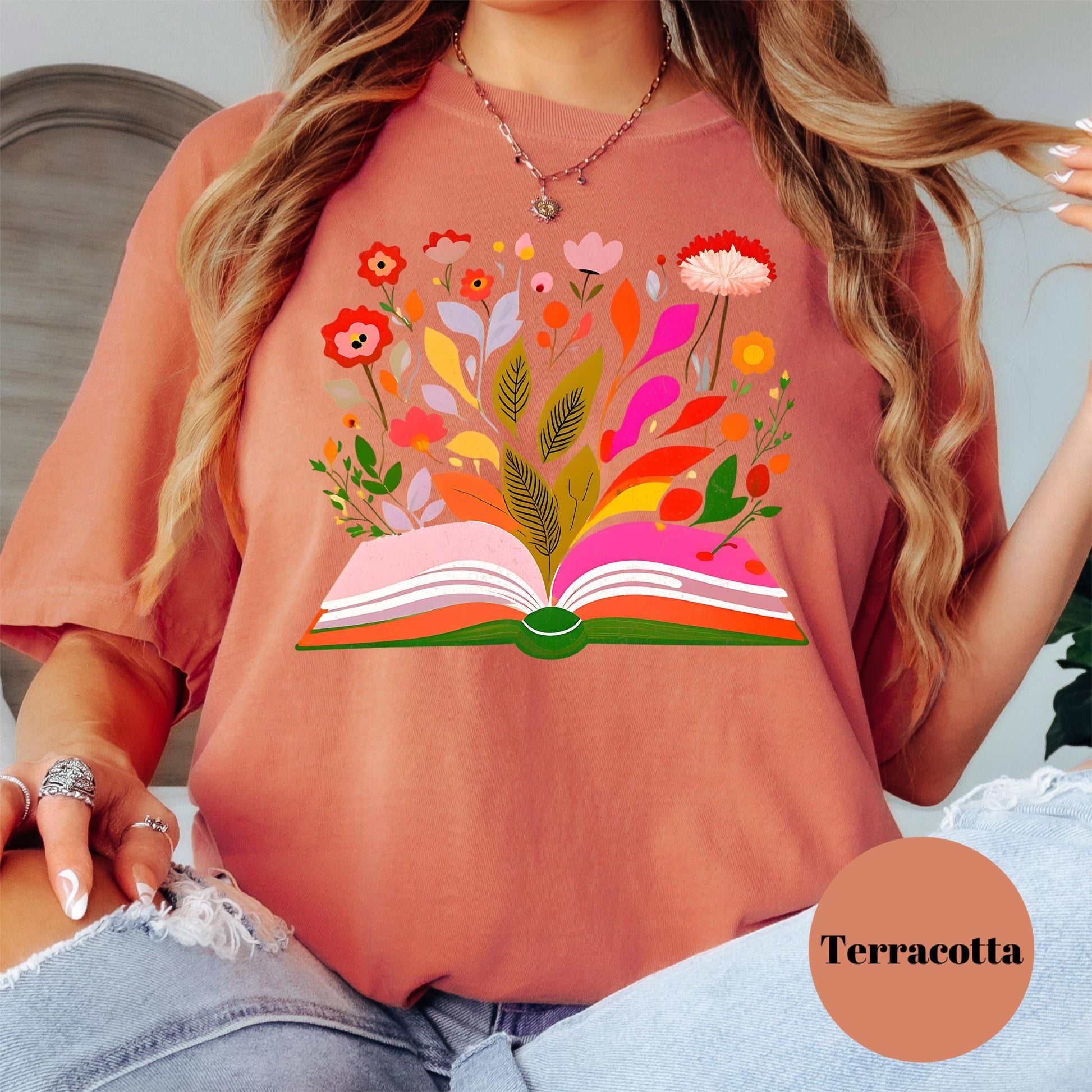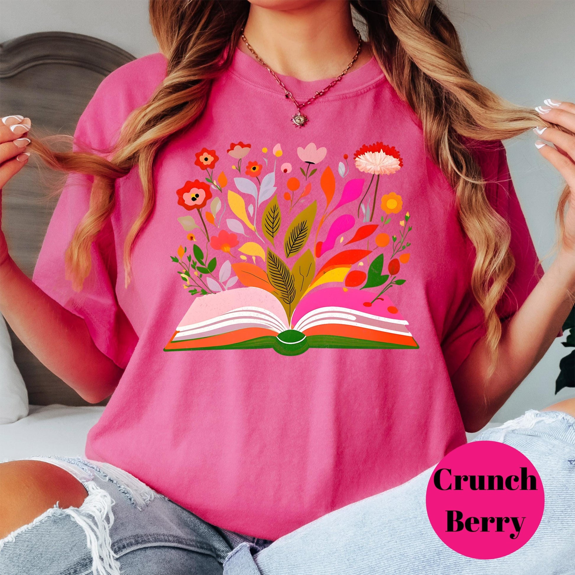 Open Book Floral Shirt, Comfort Colors® Reading Shirt, Colorful Book Lover Gift, Botanical Reader Tee, Whimsical Bookish T-Shirt