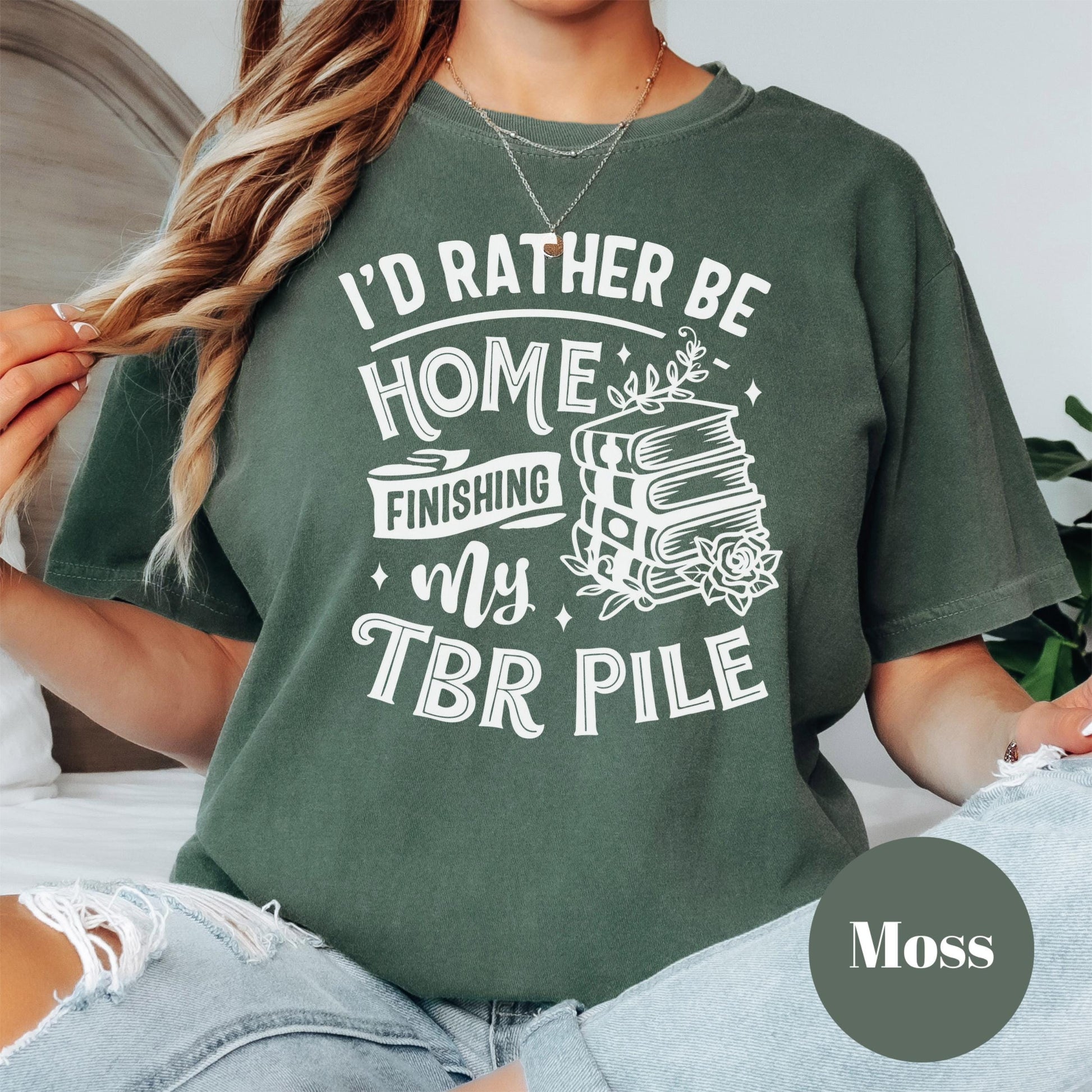 Calling all bookworms—this one's for you! This Comfort Colors® shirt reads: “I’d Rather Be Home Finishing My TBR Pile” with a cozy stack of books and floral accents. Whether your TBR pile is stacked to the ceiling or you're just looking for your next favorite read, this tee speaks your truth loud and clear (so you don’t have to).Made with ultra-soft 100% ring-spun cotton and garment-dyed for that worn-in vintage feel, this unisex shirt is comfy enough for reading marathons and cute enough to wear on bookstore runs. A must-have gift for readers, introverts, and anyone who plans their social life around reading time. 💚 HOW TO ORDER 💚1️⃣ Browse our product photos to check sizing and color options. 📏 2️⃣ Select the quantity you'd like—order one or more! ✨ 3️⃣ Choose your preferred size and color from the drop-down menus. ✨ 4️⃣ Click “ADD TO CART” to place your selection in your cart. 🛒 5️⃣ When ready, click “PROCEED TO CHECKOUT” to complete your order. 🛒 6️⃣ Your order is now in production! We will carefully process it and have it ready to ship within 1-4 business days. 🎁📏 SIZING & FIT Our unisex Comfort Colors tees offer a relaxed, comfortable fit for both men and women. They feature a classic crew neck, short sleeves, and soft-washed, garment-dyed fabric for a vintage feel. Made with 100% ring-spun cotton, these high-quality shirts are perfect for everyday wear!✔ Relaxed, unisex fit ✔ Soft-washed, garment-dyed fabric ✔ Double-needle stitching for durability ✔ No side seams to maintain shape📦 PROCESSING & SHIPPING Your order will be processed and shipped as quickly as possible! Estimated timelines are: 🛍 Processing Time: 1-4 business days 🚚 Standard Shipping: 2-6 business days after productionShipping times may vary depending on your location. Please check estimated delivery dates at checkout.✨ CARE INSTRUCTIONS To keep your t-shirt looking fresh and long-lasting: ✔ Turn the shirt inside out before washing ✔ Use cold water on a gentle cycle ✔ Air dry for best results or tumble dry on low heat ✔ Do not bleach, dry clean, or iron directly on the design💚 CUSTOMER SATISFACTION We take pride in delivering high-quality products and excellent customer service! If you have any issues with your order, please message us—we’re happy to help and will work with you to find a solution. ❓ QUESTIONS? Need assistance? Feel free to message us! We aim to respond to inquiries within 24-48 business hours. THANK YOU FOR SHOPPING WITH US!We appreciate your support! Be sure to check out our shop for more fun and unique t-shirt designs before completing your order. We’d love to serve you again! 💕