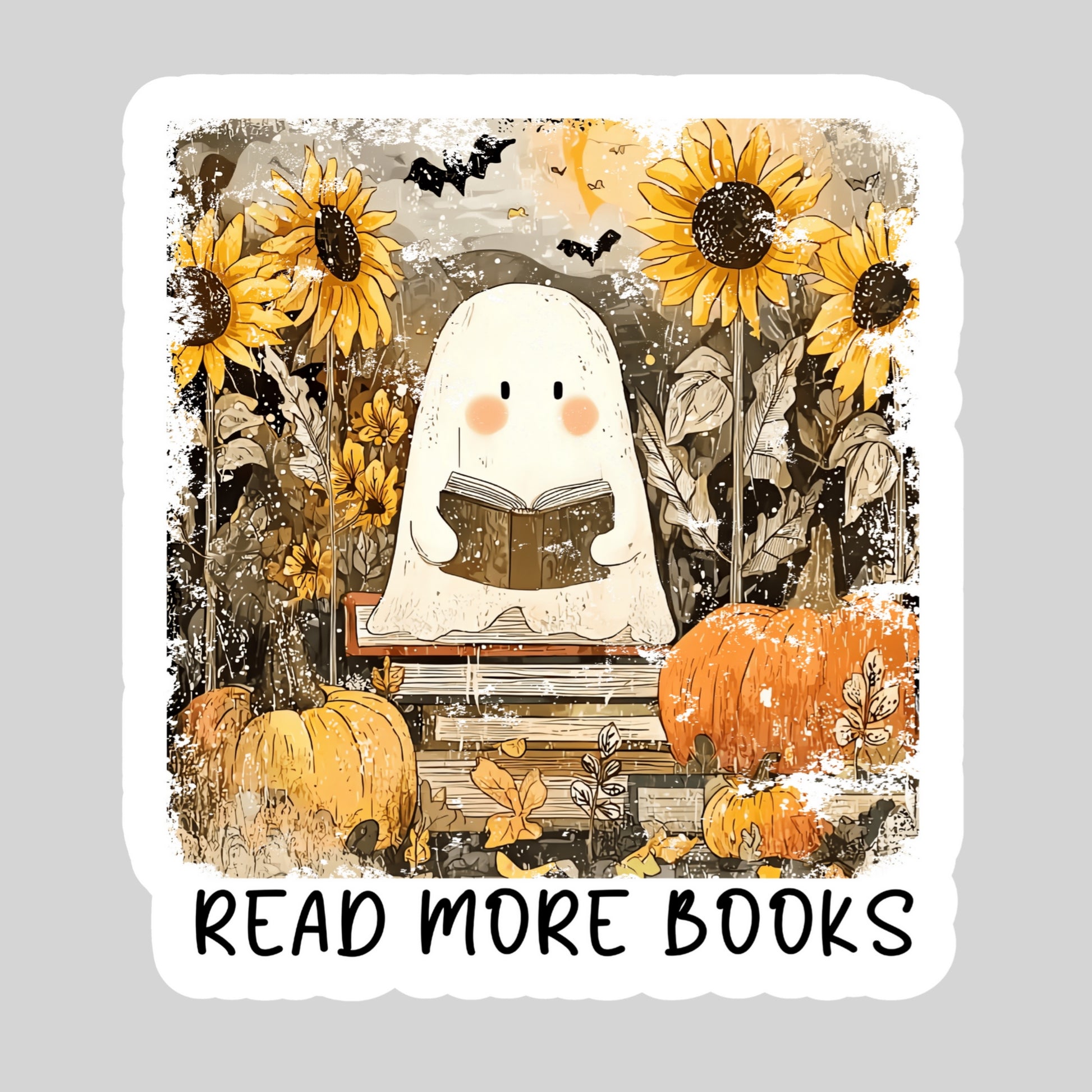 Read More Books Ghost Fall Halloween Book Reader Sticker โ 3" Waterproof Bookish Sticker with Holo Overlay โ Reading, Books, Reader Gift, Book Lover, Bookstore Merch
