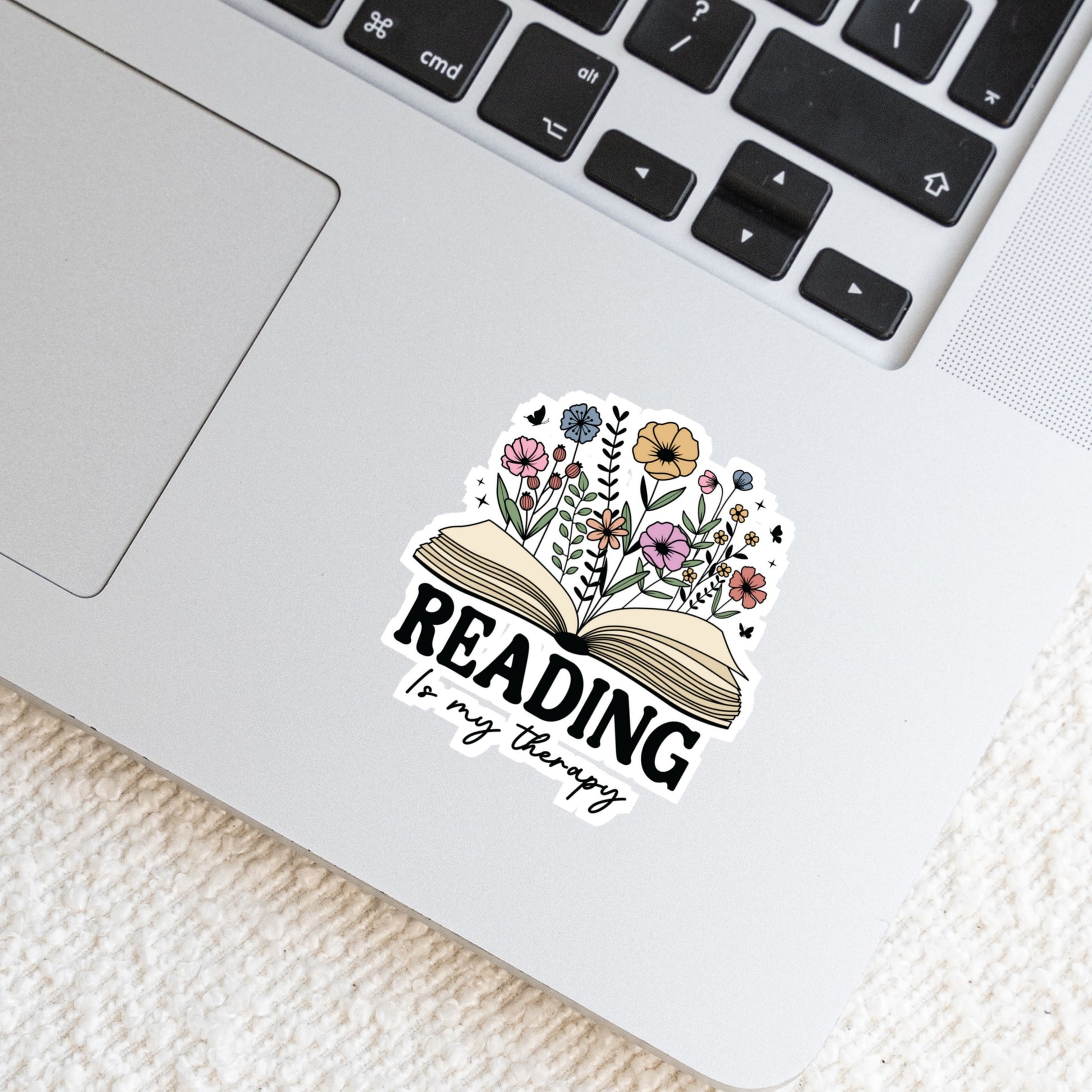 Reading is My Therapy Open Book Floral Book Reader Sticker โ 3" Waterproof Bookish Sticker with Holo Overlay โ Reading, Books, Reader Gift, Book Lover, Bookstore Merch