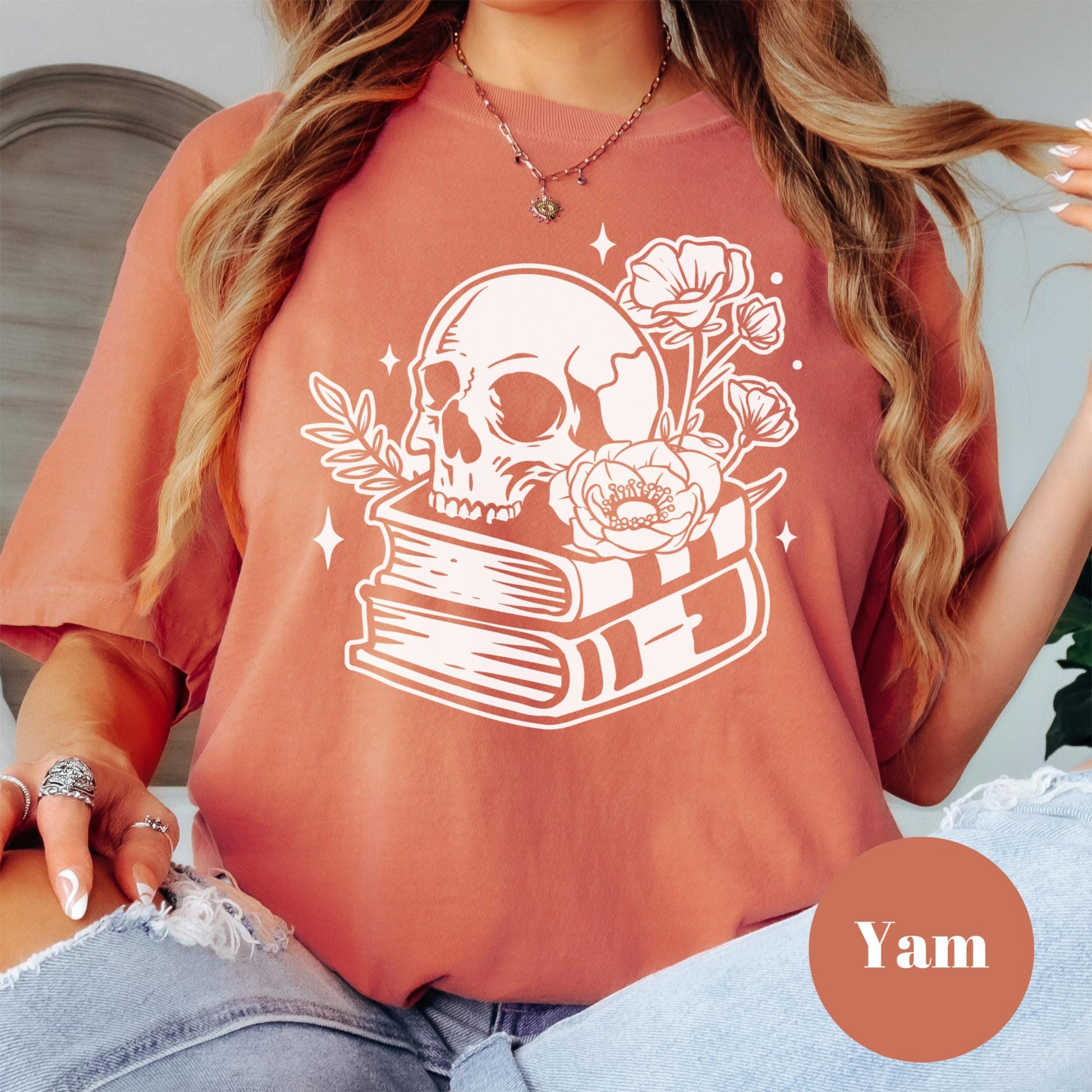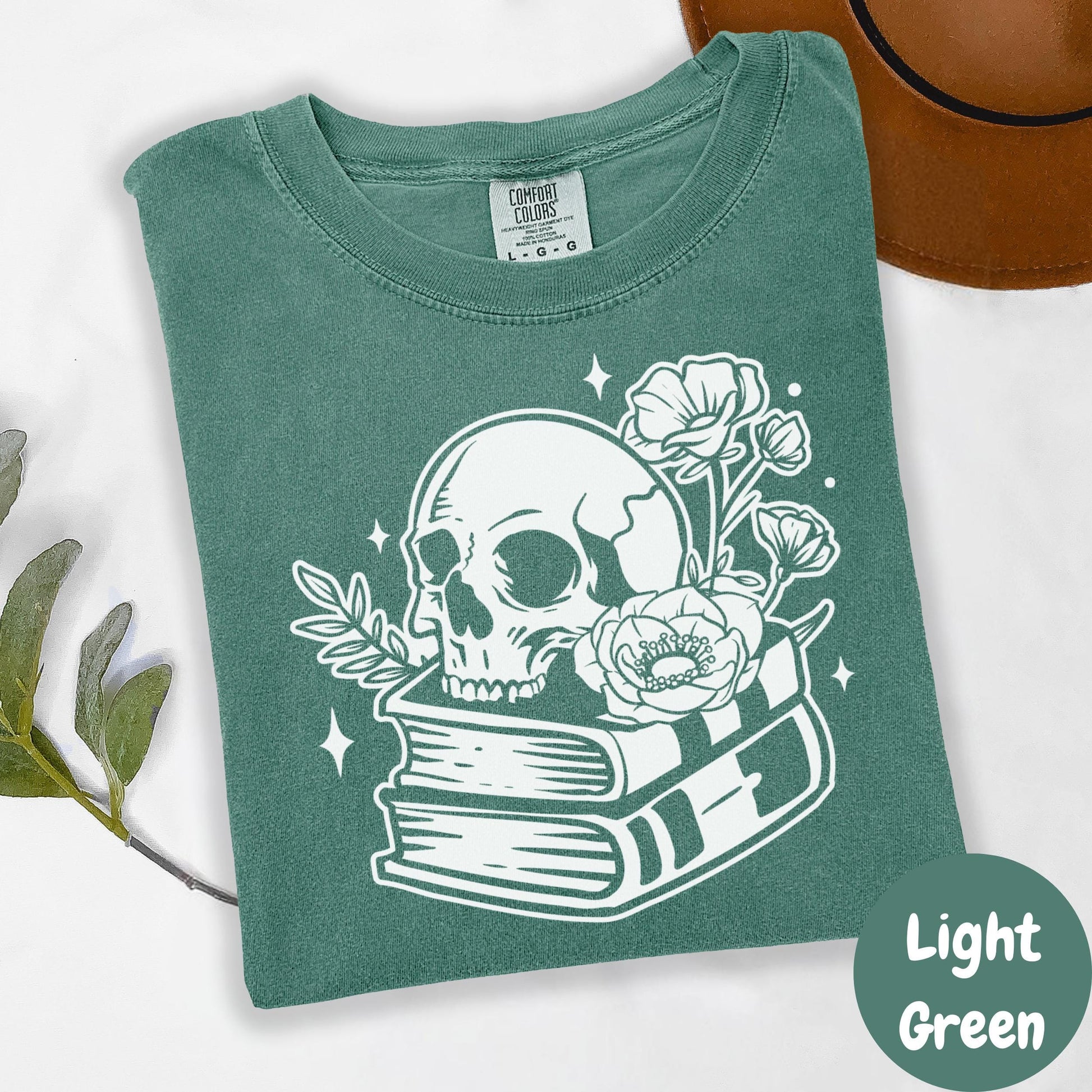 Skull and Books Shirt, Gothic Book Lover Comfort Colors® Shirt, Dark Academia Tee, Spooky Reading Shirt, Literary Gift, Bookish Skull Tee